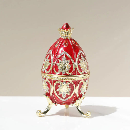 Œuf Fabergé rouge émaillé 💎 – boîte à bijoux & déco élégante