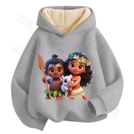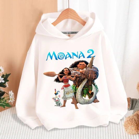 Sweat à capuche Disney Moana 2 pour enfants, sweat-shirt Chaud, vêtements mignons pour garçons et filles, impression graphique d'anime de dessin animé, streetwear, cadeaux