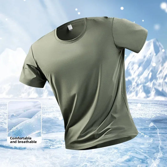 T-shirt Homme Ice Silk Été, Respirant Séchage Rapide Sport Casual