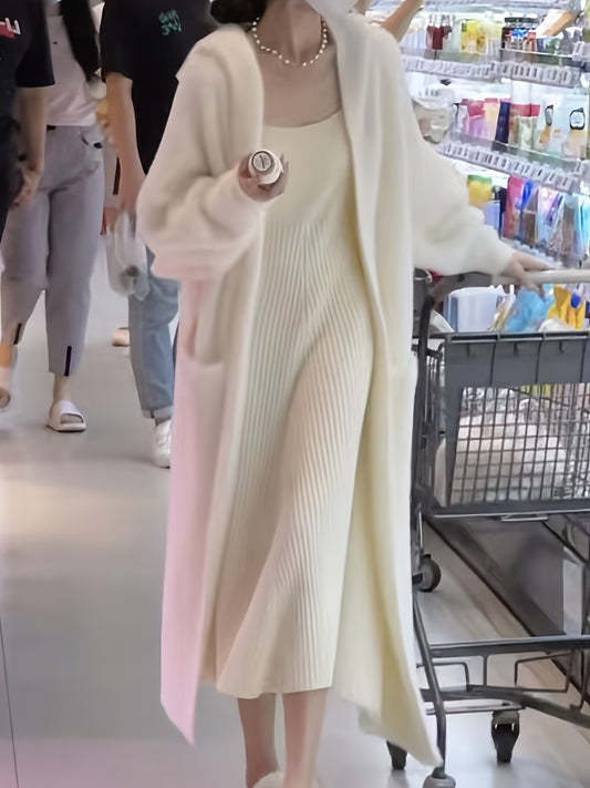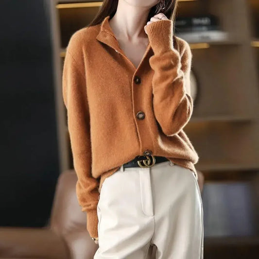Cardigan femme kaki 🧥 – Gilet chaud automne hiver style coréen