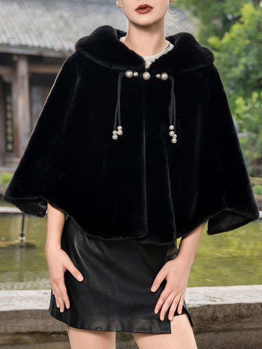 Cape élégante en fausse fourrure – Perles & pompons hiver chic