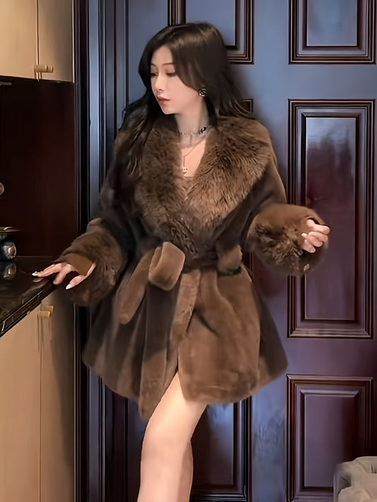 Manteau femme hiver élégant – Ceinture & fausse fourrure chic