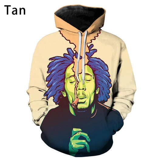 Sweat Bob Marley 3D unisexe, Rock & Reggae, automne-hiver