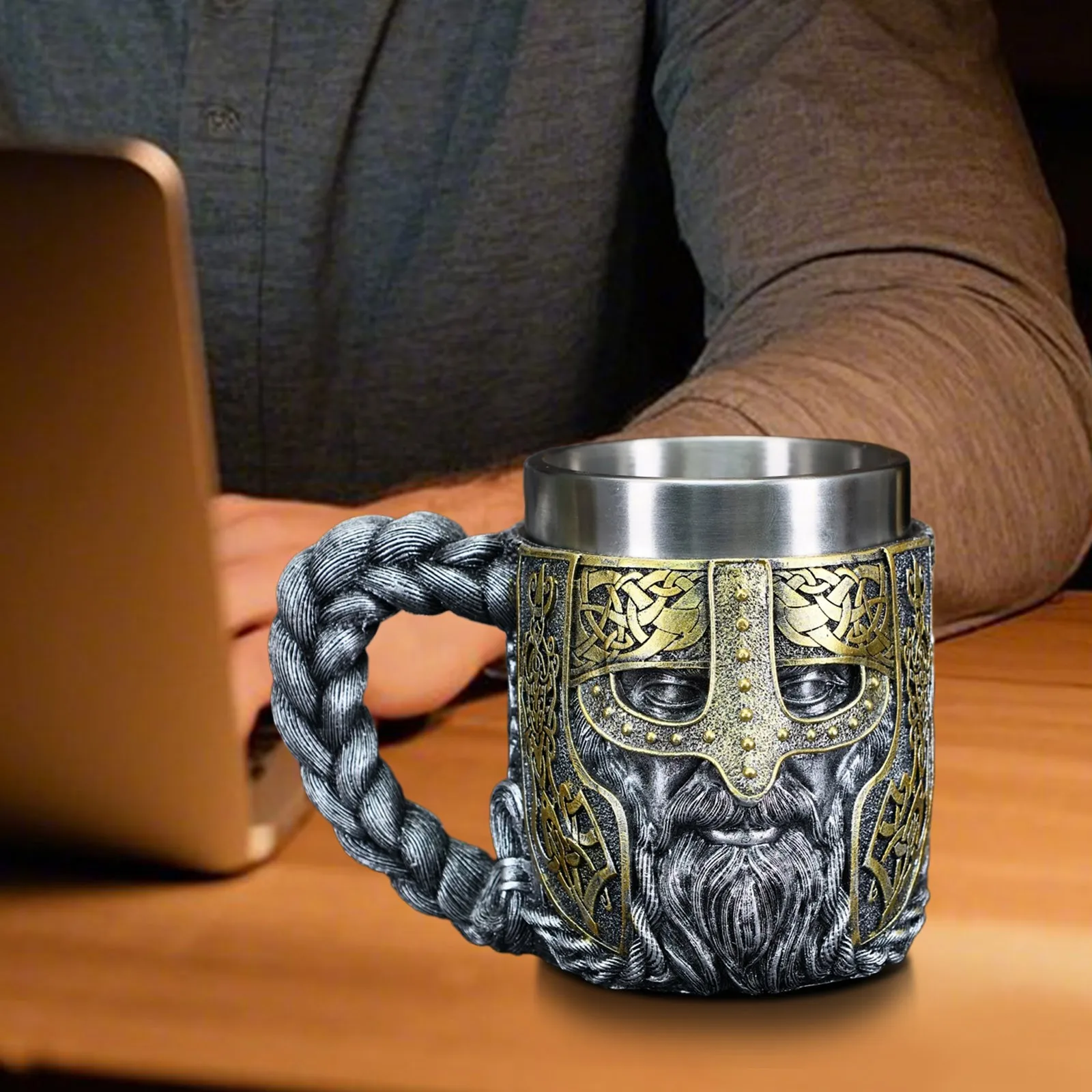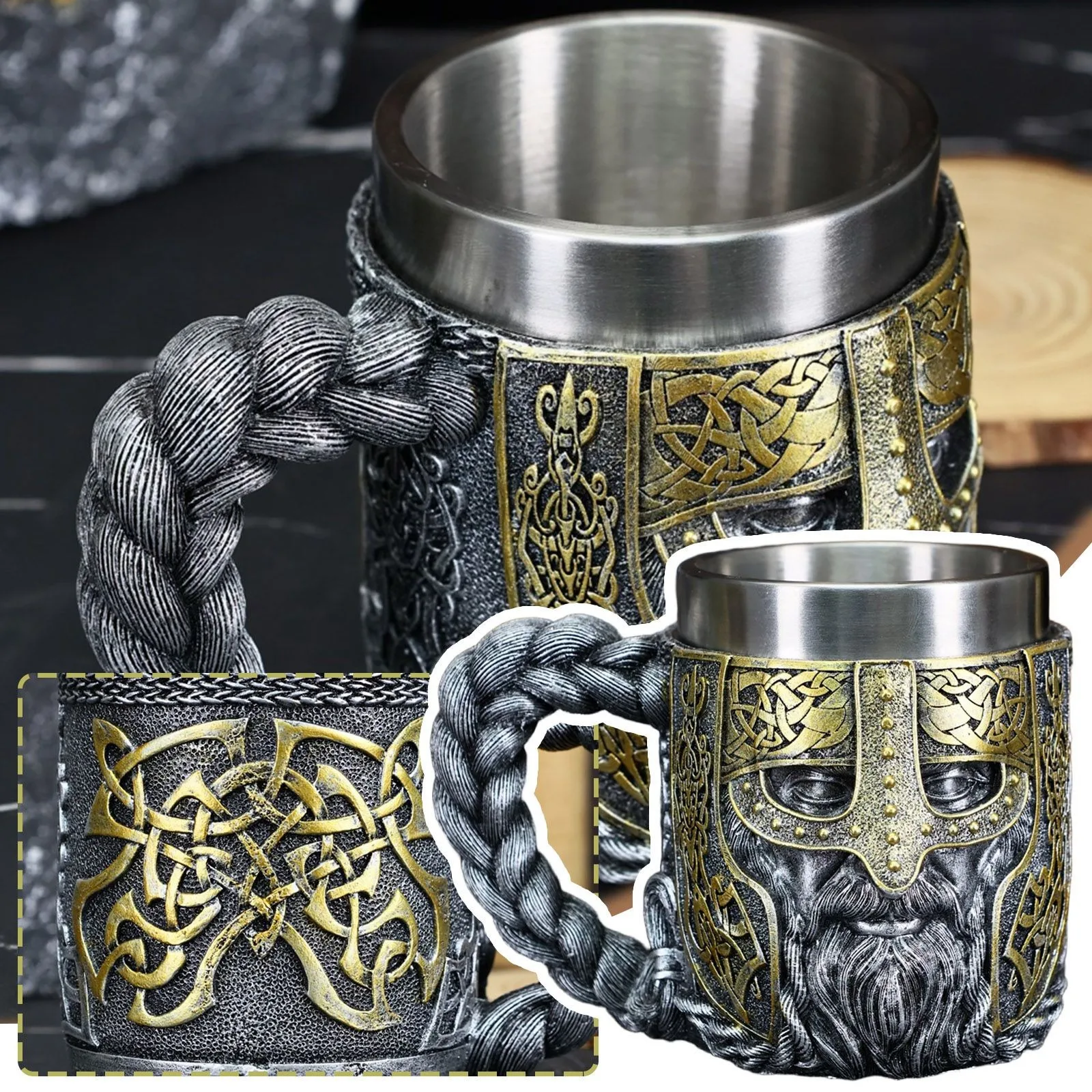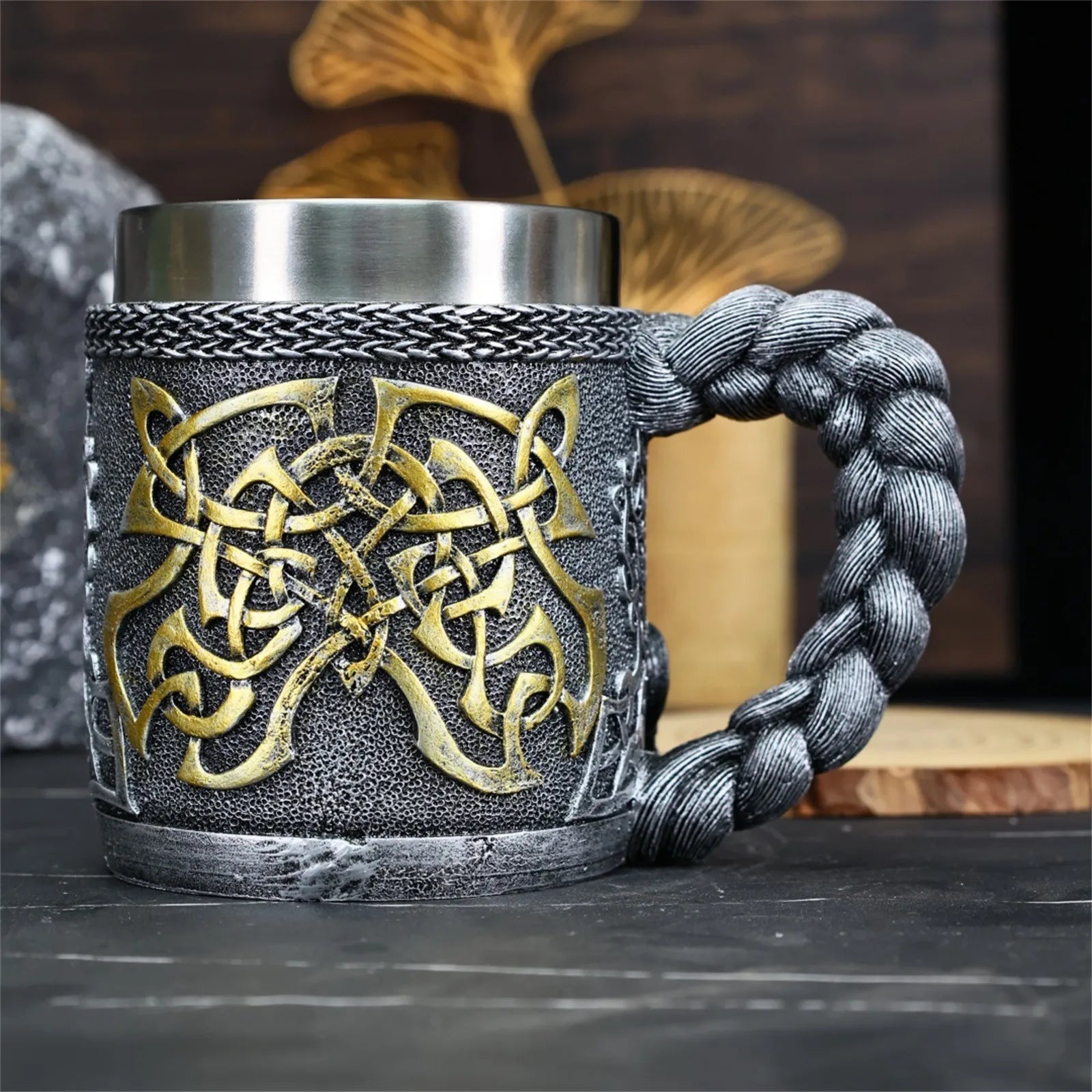 Chope Viking acier inoxydable – Mug guerrier nordique 450 ml