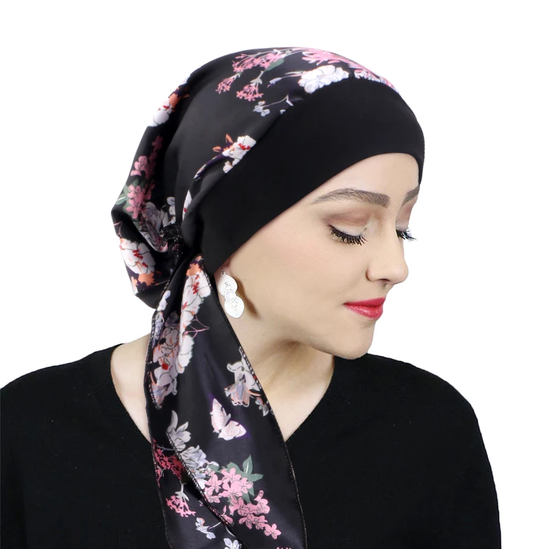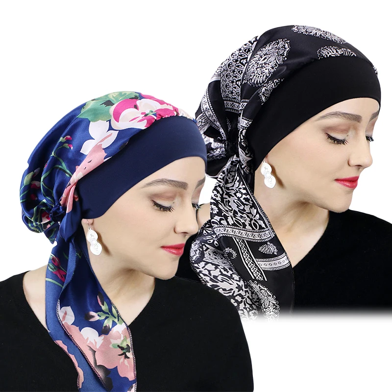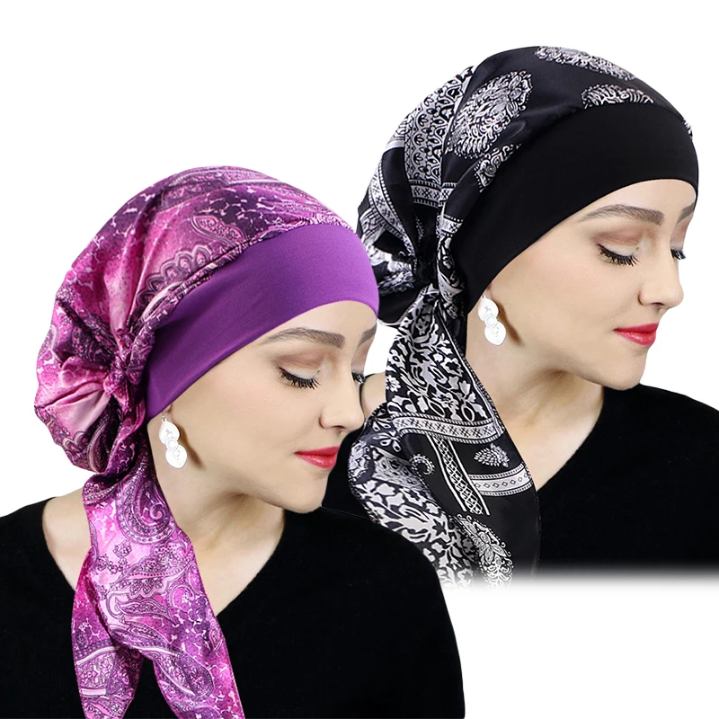 Foulard turban femme 🌸 – Pré-noué, élastique & imprimé chic