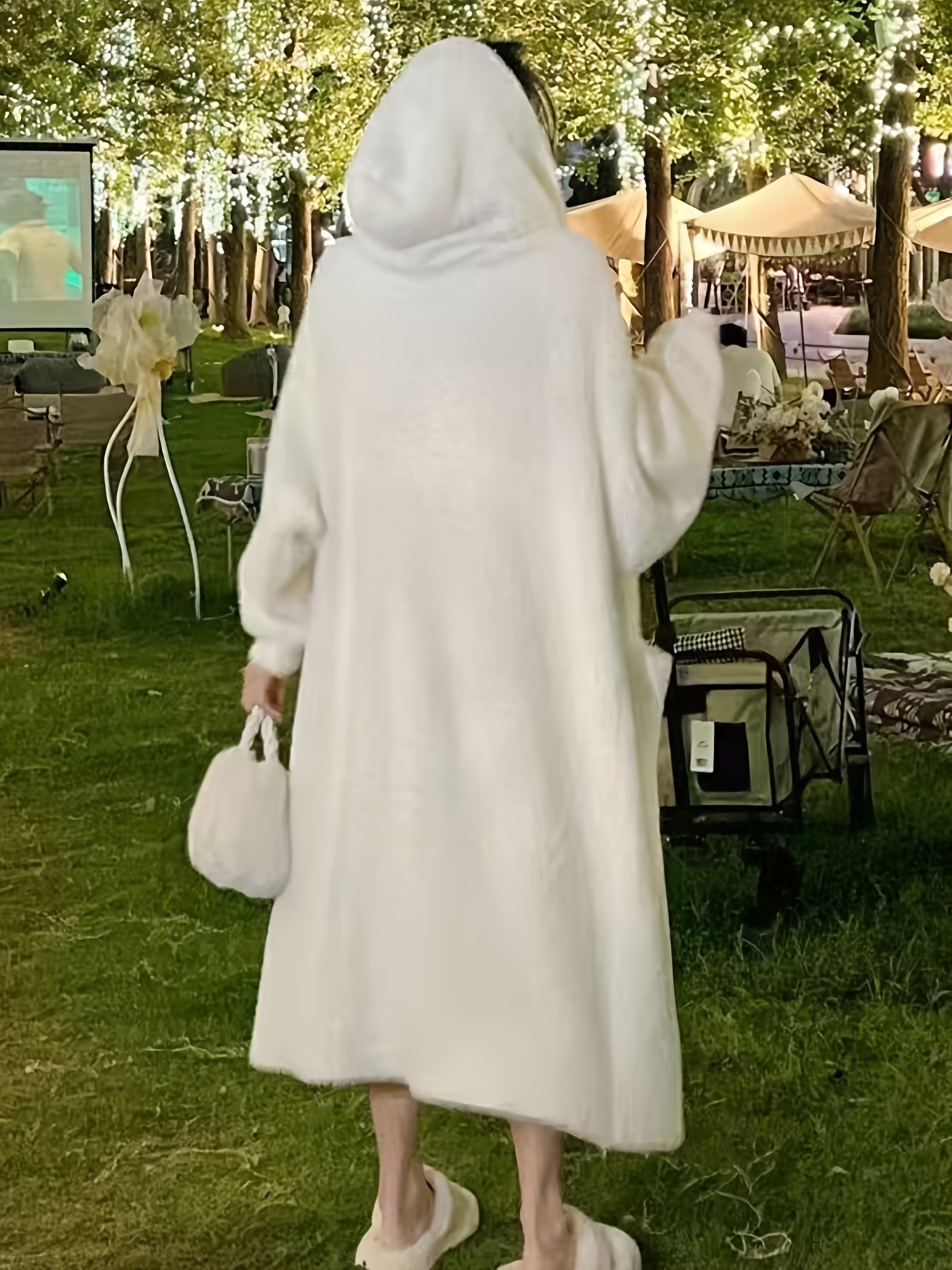 Sa texture douce façon laine polaire procure un confort absolu, tandis que sa coupe oversize et son ouverture fluide en font une pièce tendance et polyvalente.
