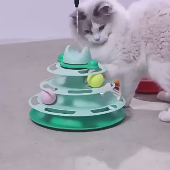 🐾 Jouet Interactif pour Chat – Tour 4 Niveaux avec Balles & Plume