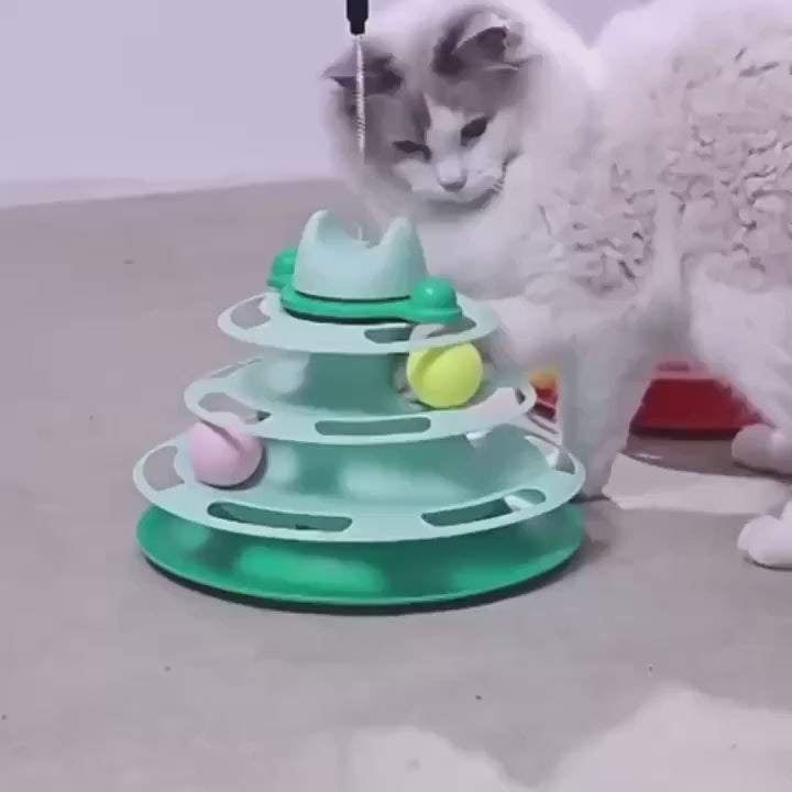 1pcs 4-Layer Feather Cat Turntable With Fun Toy Ball And Playing Stick - Interactive Toy For Cats