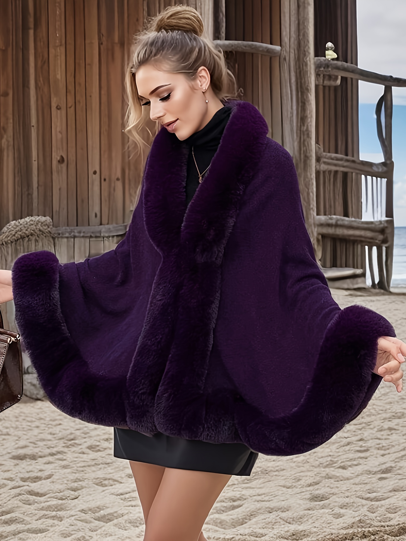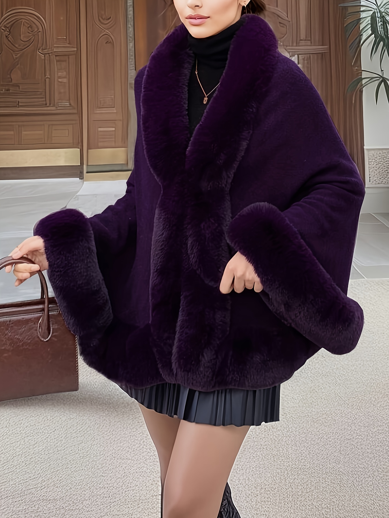 Manteau cape grande taille femme – Fausse fourrure chic hiver