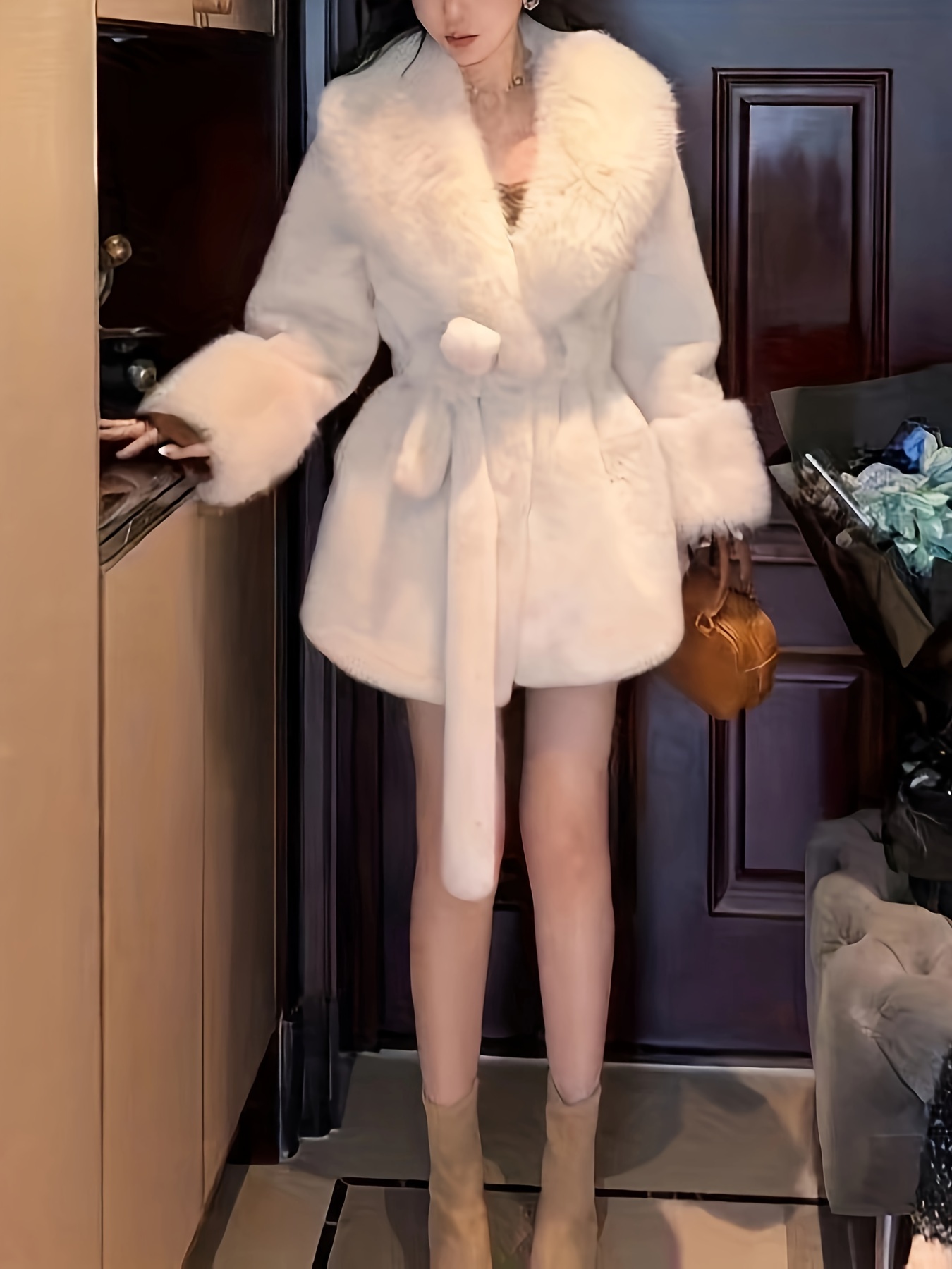 Manteau femme hiver élégant – Ceinture & fausse fourrure chic