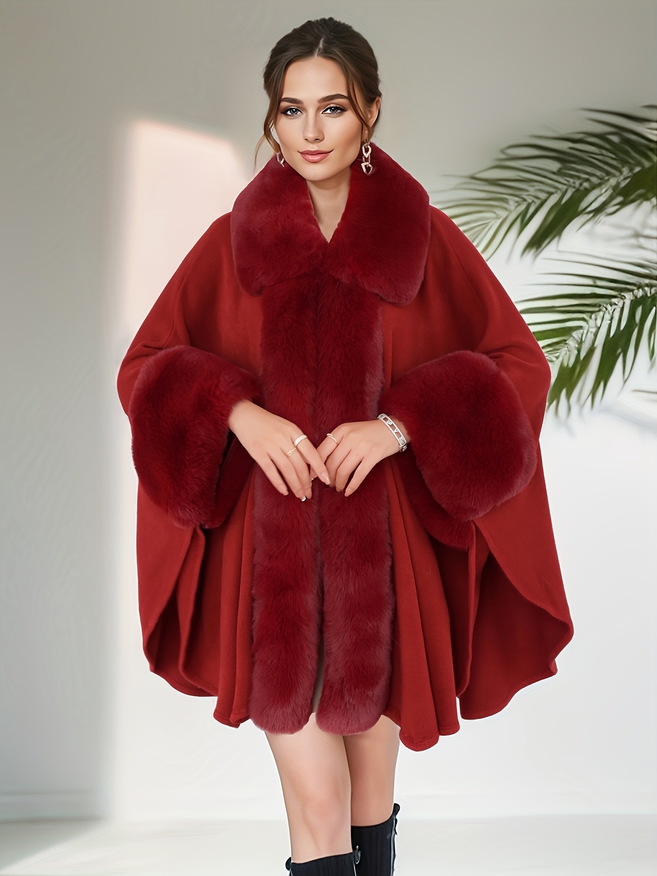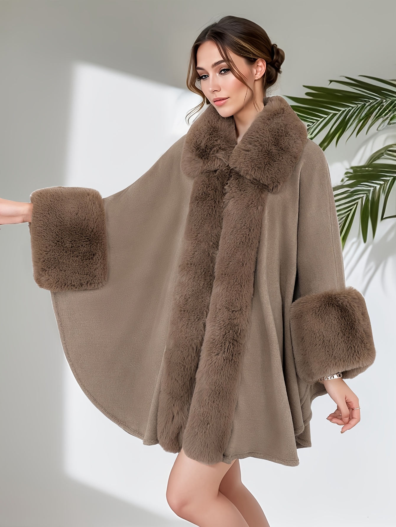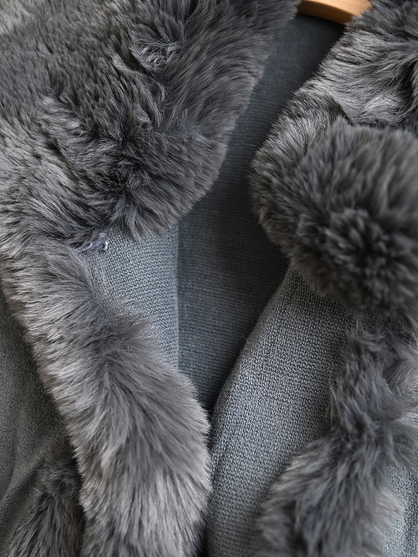 Manteau grande taille femme – Ouvert avec col fausse fourrure