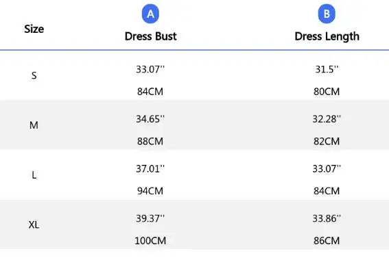 Size L: Dress Bust 94 cm (37.01''), Dress Length 84 cm (33.07'')