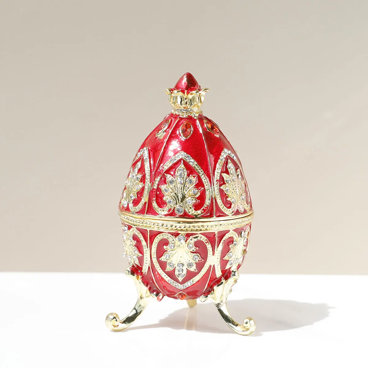 Œuf Fabergé rouge émaillé 💎 – boîte à bijoux & déco élégante