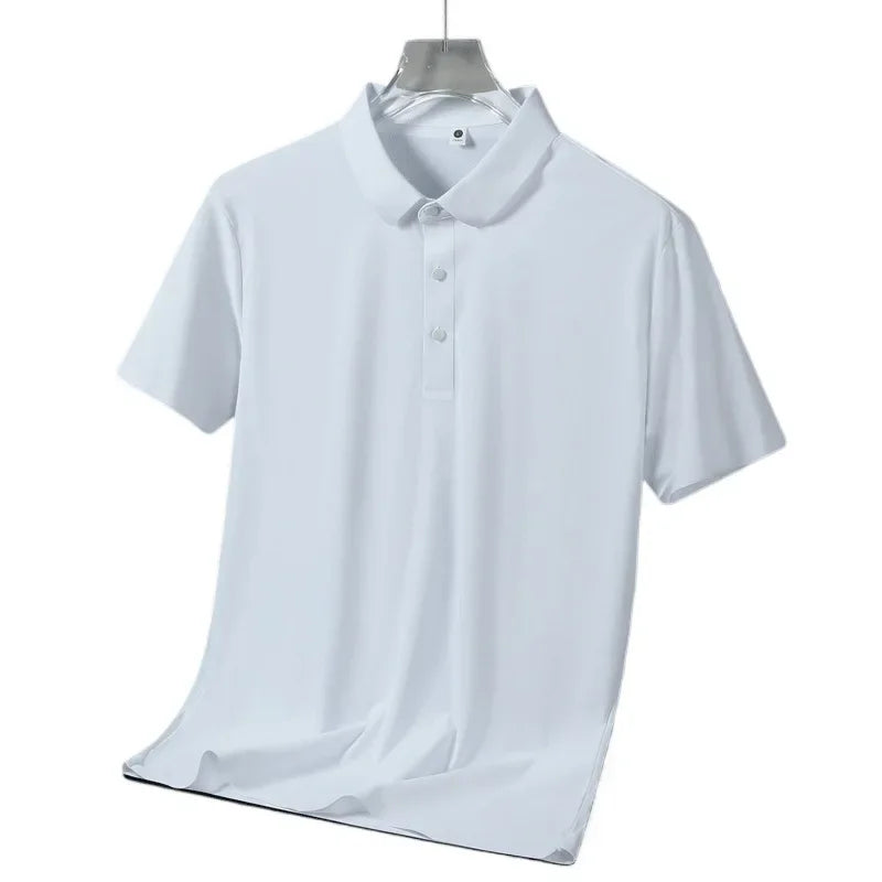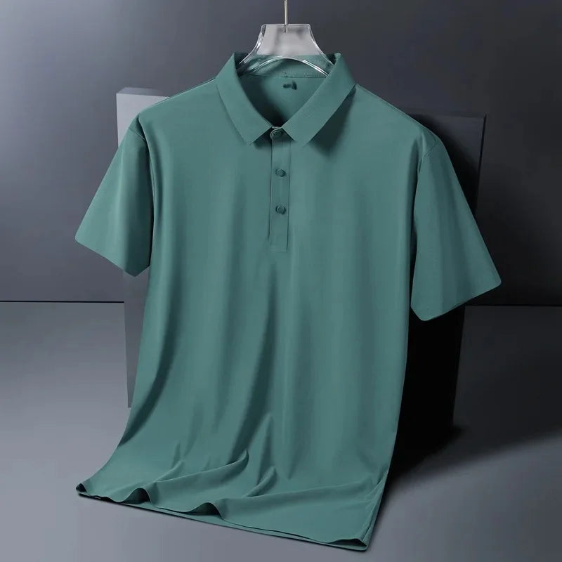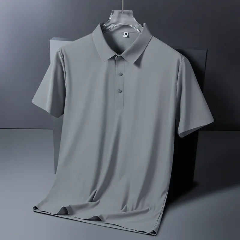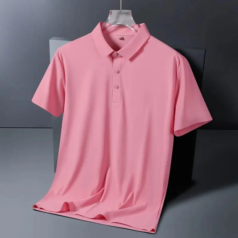 Breathable Material: Crafted from ice silk, this polo shirt offers exceptional breathability, keeping you cool during summer heat. -
