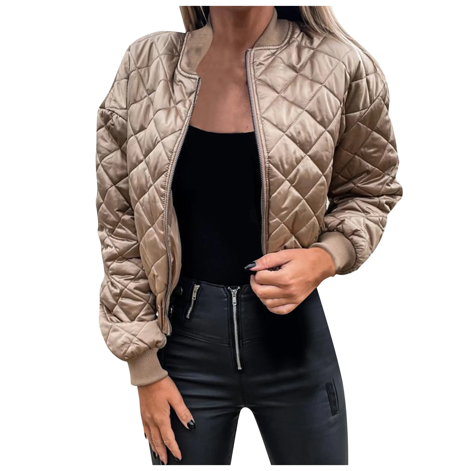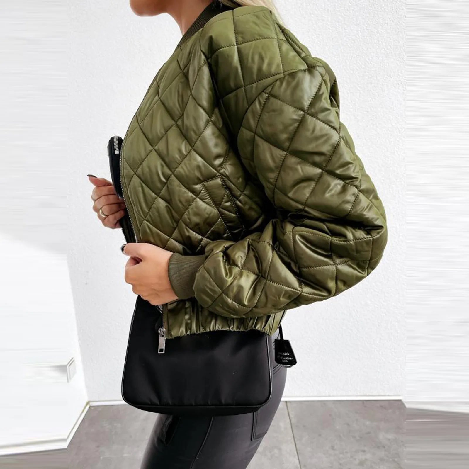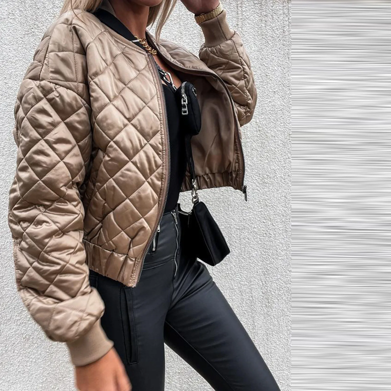 Veste courte femme automne – Bomber zippé à carreaux chaud & stylé