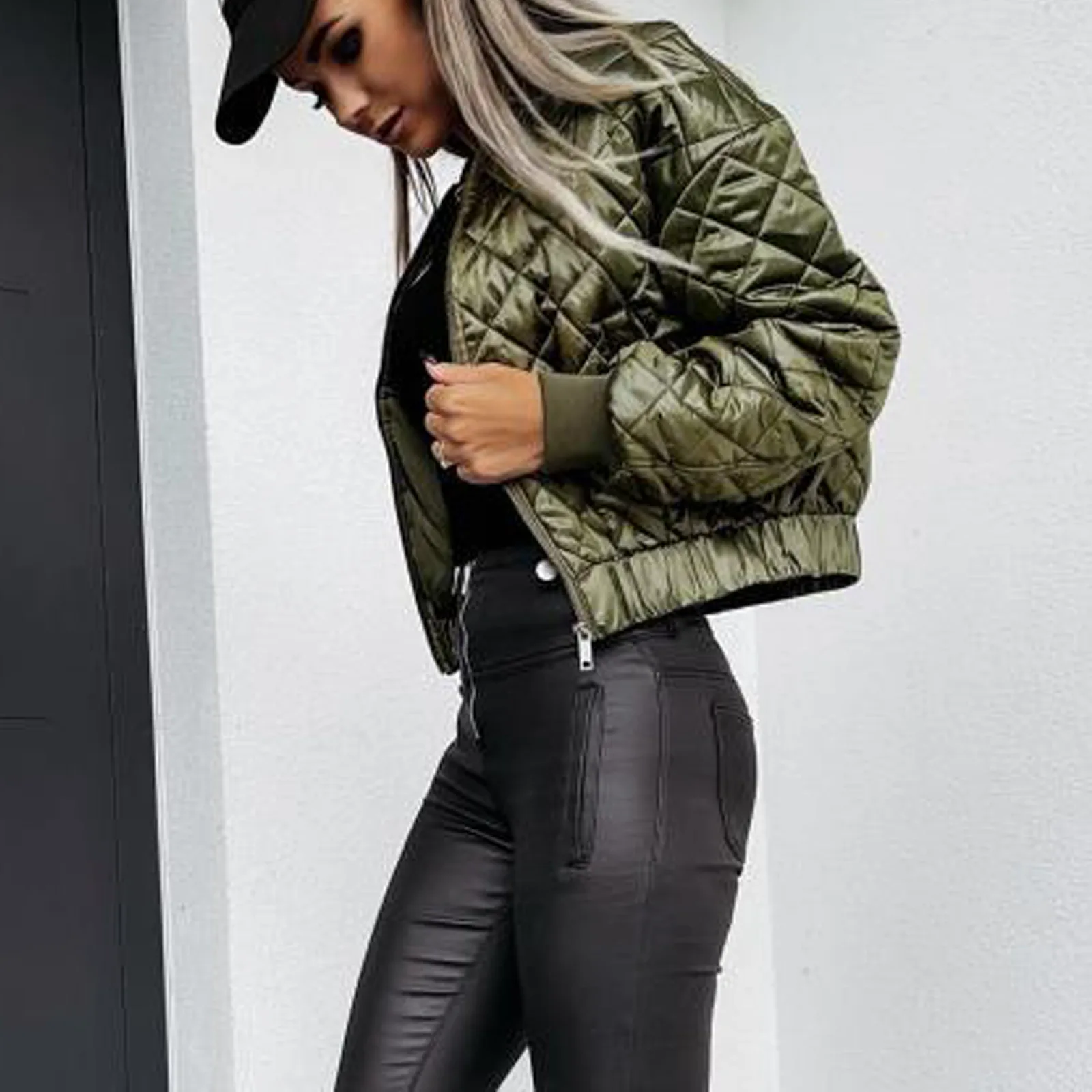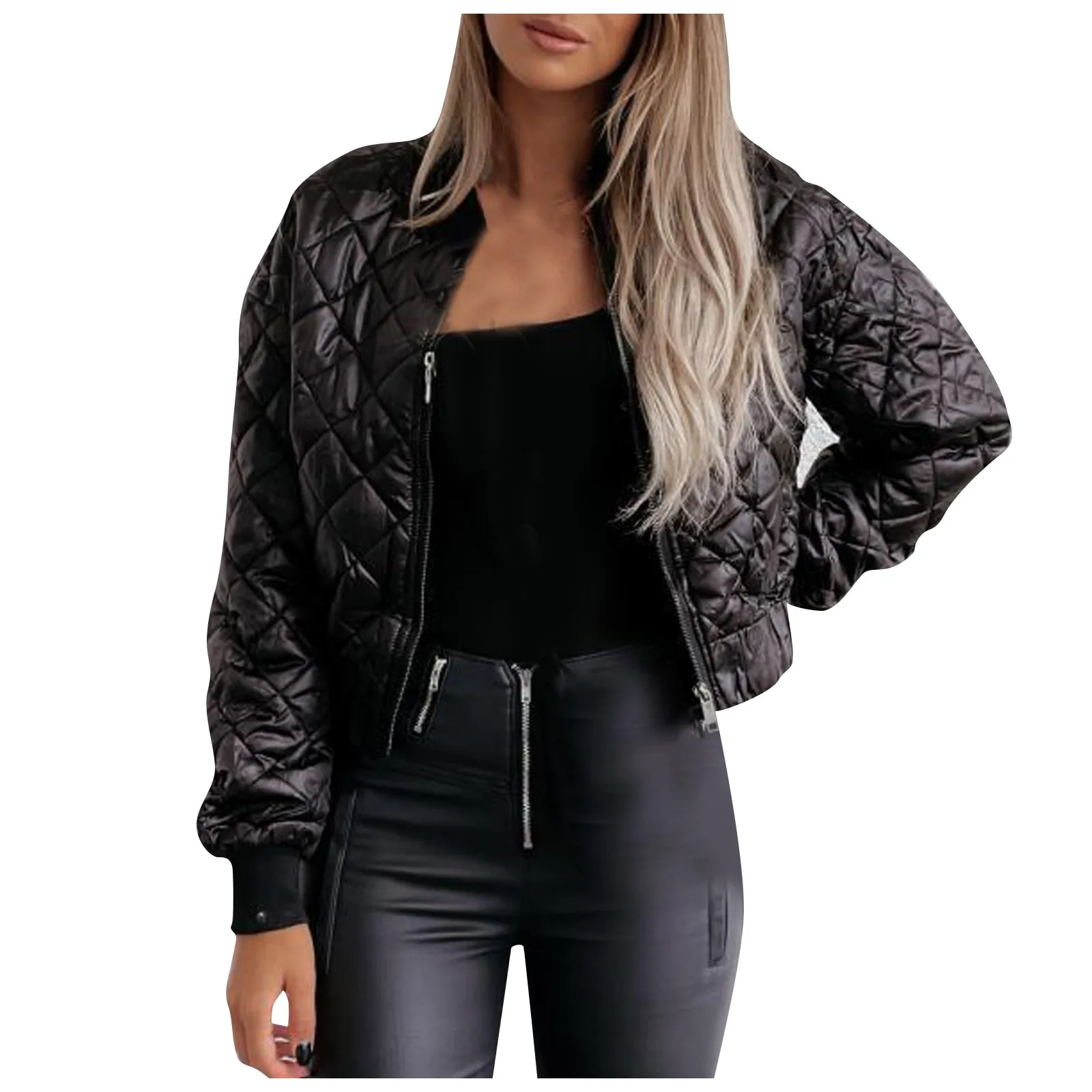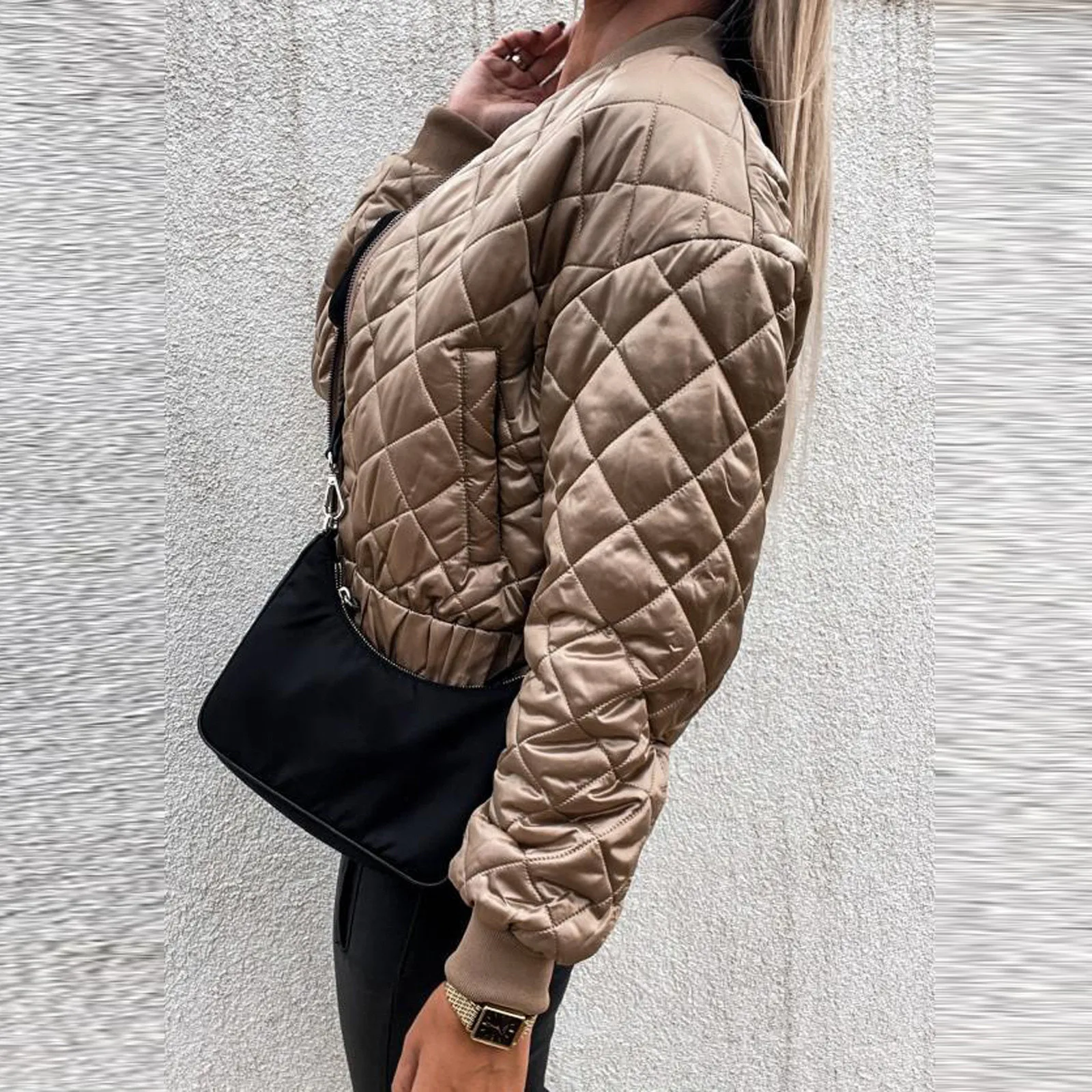 Veste courte femme automne – Bomber zippé à carreaux chaud & stylé