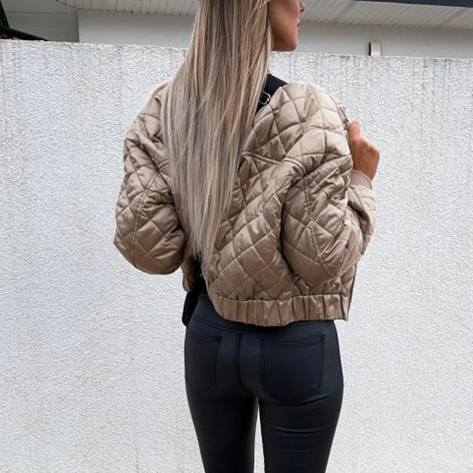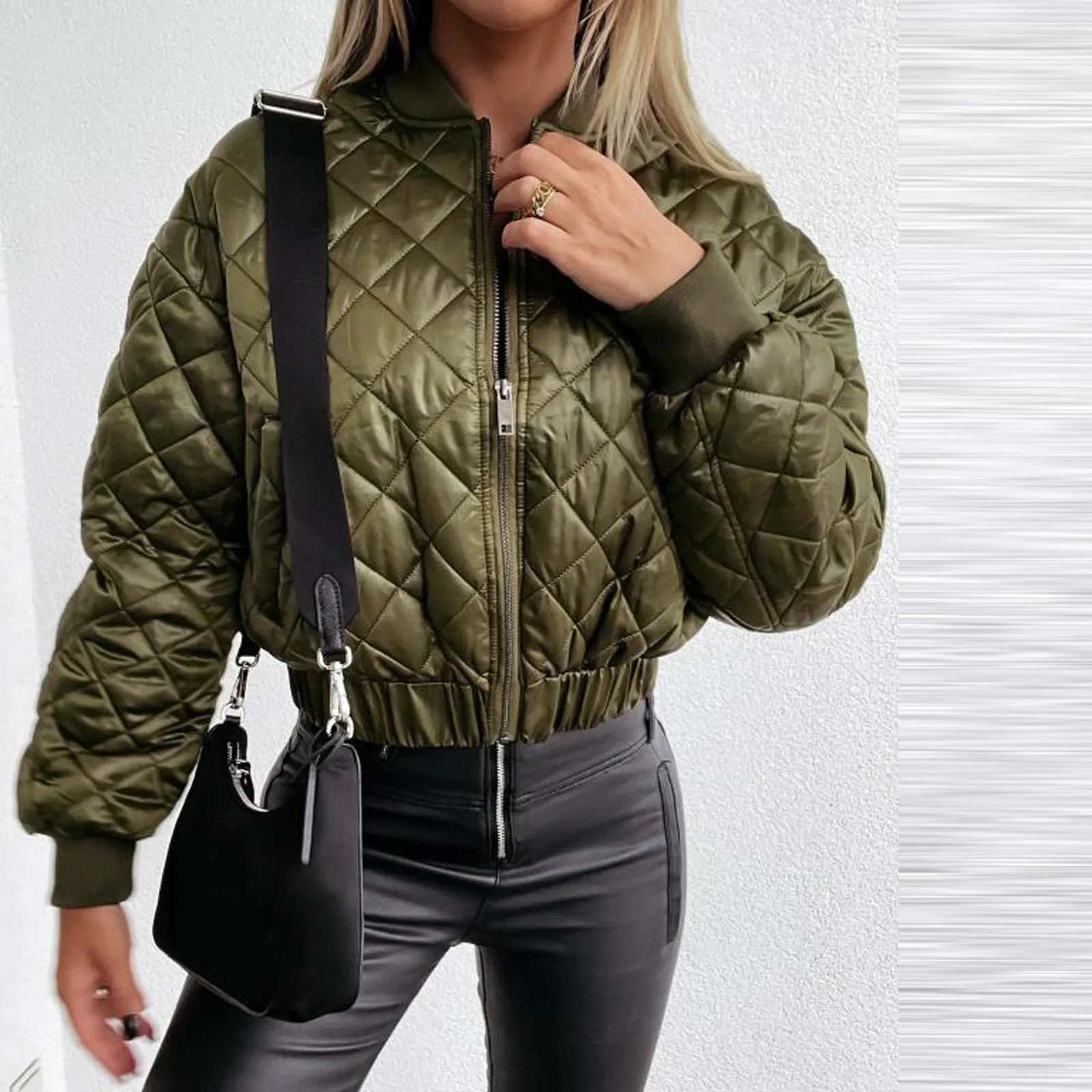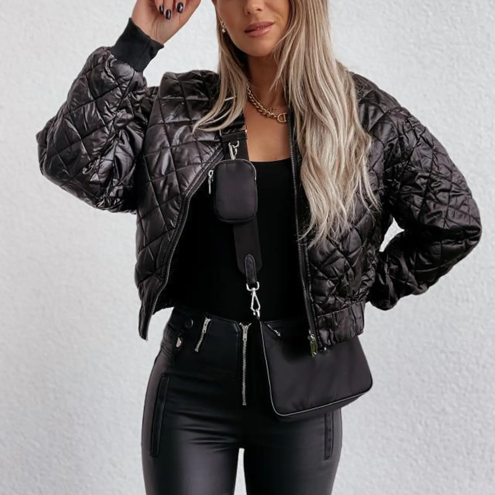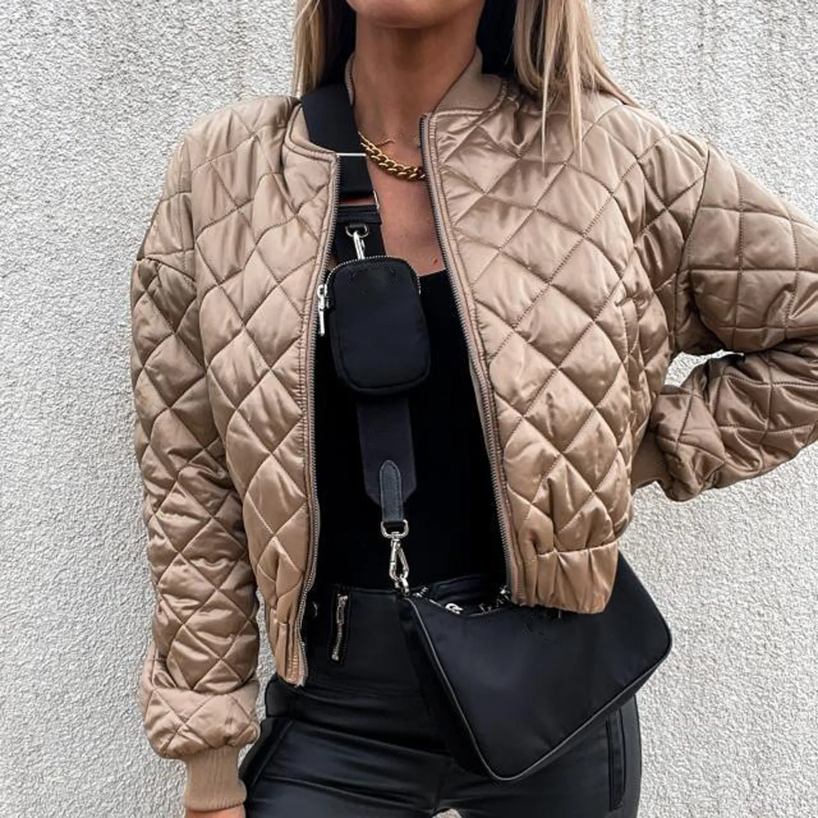 Affichez un look à la fois décontracté et tendance avec cette veste courte femme automne, inspirée du style bomber à carreaux.
