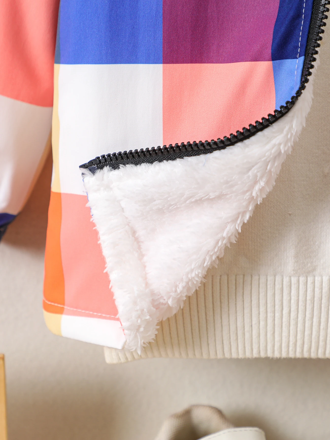Cette veste associe un design moderne à motifs imprimés à une doublure en polaire ultra douce, idéale pour affronter le froid avec confort et élégance.